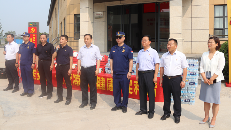 進(jìn)入夏季以來,持續(xù)出現(xiàn)的高溫天氣,給奮戰(zhàn)在建設(shè)一線的施工人員帶來嚴(yán)峻考驗(yàn),廣大職工不畏酷暑,堅(jiān)守崗位,辛勤付出。為做好廣大職工的防暑降溫工作,切實(shí)保護(hù)職工身體健康,6月11日,鄭州市總工會、鄭州市消防救援支隊(duì)到鄭州地產(chǎn)集團(tuán)西流湖公司中原新區(qū)土地一級開發(fā)項(xiàng)目指揮部開展主題為“送清涼、送安全、送健康、促和諧”的夏季送清涼活動。鄭州市一級巡視員、市總工會黨組書記、主席趙新中,市消防救援支隊(duì)副支隊(duì)長、滅火救援指揮部部長李隆,市總工會副主席宋少丹,鄭州地產(chǎn)集團(tuán)有限公司監(jiān)事會主席、工會主席李靜波及西流湖公司黨支部書記、董事長、總經(jīng)理吉獻(xiàn)亮等領(lǐng)導(dǎo)出席活動。活動由西流湖公司副總經(jīng)理昌磊主持。