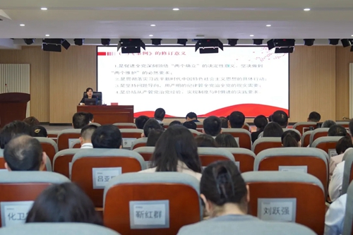 市紀(jì)委監(jiān)委駐城發(fā)集團(tuán)紀(jì)檢監(jiān)察組副組長姬小靜,以《做遵規(guī)守紀(jì)的明白人》為題,分別從《條例》的歷史沿革、修訂意義、新變化和特點(diǎn)等方面,逐章逐條深度解讀新修訂的《中國共產(chǎn)黨紀(jì)律處分條例》。深刻領(lǐng)悟全面從嚴(yán)治黨的實(shí)踐要求,切實(shí)學(xué)出政治忠誠、學(xué)出清正廉潔、學(xué)出擔(dān)當(dāng)作為。