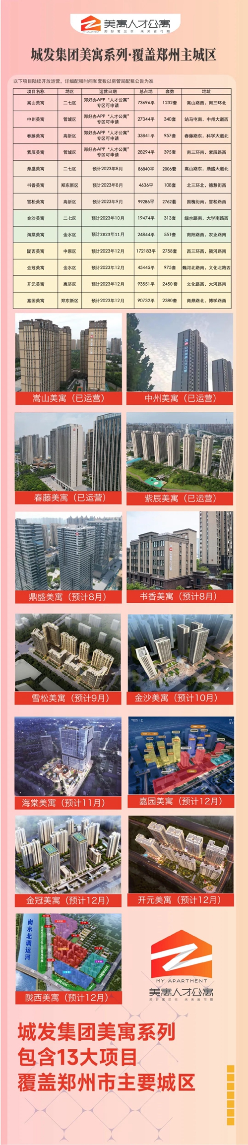 鄭州城市發展集團有限公司自覺踐行“讓城市更美麗、讓生活更美好”的企業使命,持續聚焦城市有機更新項目,積極為鄭州高品質城市建設貢獻力量。鄭州城發集團圍繞市委、市政府引才工作要求,全力打造“美寓”系列人才公寓,不斷優化人才發展環境,讓人才在鄭州既能盡情施展才華、又能悅享生活。