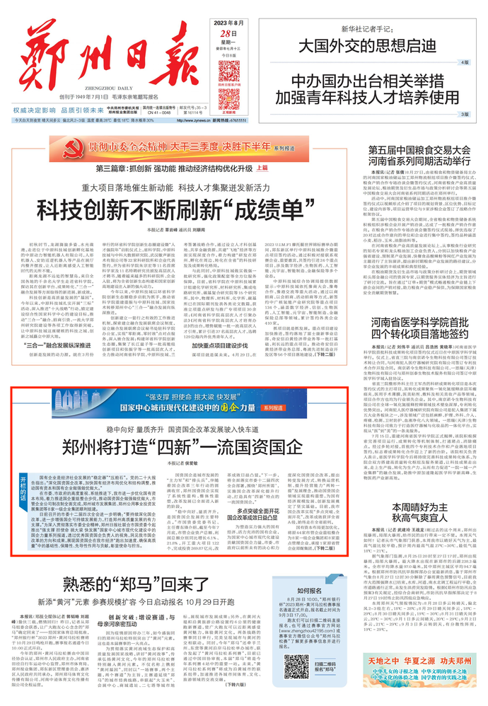 首先,為您推出《穩中向好 量質齊升 國資國企改革發展駛入快車道 鄭州將打造“四新”一流國資國企》——