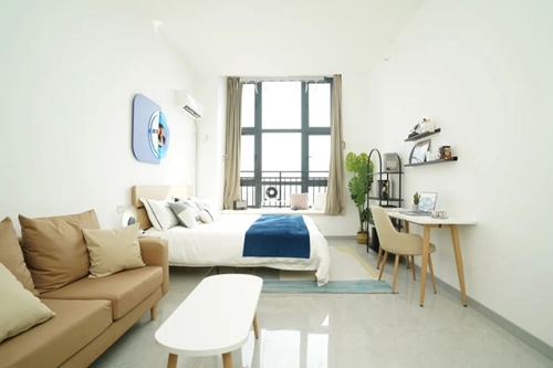 在王宇計劃租住的公寓內,不僅配備了智能門鎖、獨立衛浴、床、衣柜、洗衣機、空調、冰箱,小到晾衣架也準備了好幾個,“家電配套都是全新的,而且租金比市場價更低。”