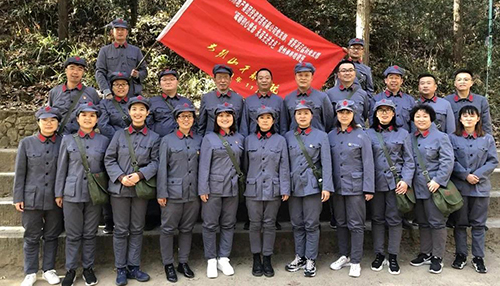 14日,學(xué)員們走上“志仁小道”,在這條曲折山路上,新縣首位共產(chǎn)黨員——王志仁奔走宣傳革命思想、努力開展革命活動(dòng)。在爬山的途中路遇陡坡,旁邊的隊(duì)友立刻伸出援助之手;渴了,沒事我的水給你先喝……身著紅軍服,腳走崎嶇道,學(xué)員們仿佛置身那段熱血?dú)v史中,用自身行動(dòng)弘揚(yáng)革命先輩不畏艱險(xiǎn)、頑強(qiáng)斗爭(zhēng)的光榮傳統(tǒng)。 下午在新縣鄂豫皖蘇區(qū)首府烈士陵園,全體學(xué)員懷著肅穆的心情向革命先烈們敬獻(xiàn)花籃并真誠(chéng)致禮,在革命烈士事跡陳列廳重溫入黨宣誓。陳列的一個(gè)個(gè)實(shí)物、一幅幅畫卷,將蘇區(qū)可歌可泣的英雄事跡清晰地展現(xiàn)在大家面前,舉起右手,莊嚴(yán)宣誓,英雄們的感人事跡激勵(lì)著我們,在來之不易的和平年代,用實(shí)際行動(dòng)來弘揚(yáng)革命先輩用鮮血和生命凝結(jié)的紅色文化。