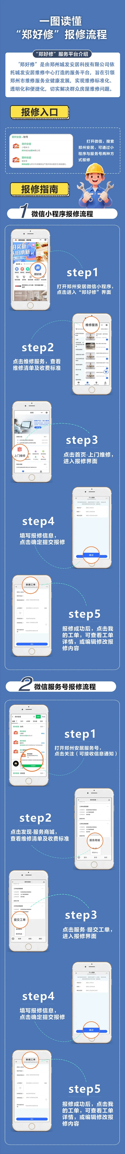 為切實解決群眾房屋維修難題,推動鄭州市維修服務業邁向標準化、透明化、便捷化發展新征程,由鄭州城發集團下屬子公司鄭州城發安居科技有限公司精心打造的“鄭好修”服務平臺,正式上線運營。市民通過鄭州安居微信小程序、鄭州安居微信服務號,即可輕松實現一鍵報修,享受優質高效的房屋維修服務。