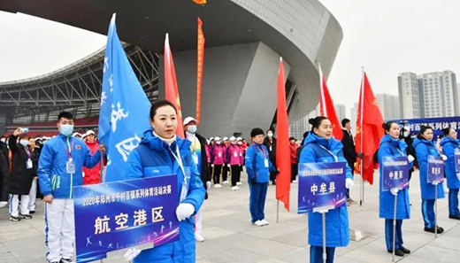 12月8日上午9時,2020年鄭州市“千村百鎮”系列體育活動決賽在鄭州奧體中心舉行。鄭州市體育局副局長蔣濤、鄭州市農村與農業委員會調研員王選順、河南鄭地奧體中心管理有限公司總經理王新華、鄭州市體育局群體處處長楊書友、部分縣區(市)代表隊負責人以及全市各縣區(市)的運動員代表一千余人參加活動啟動儀式。