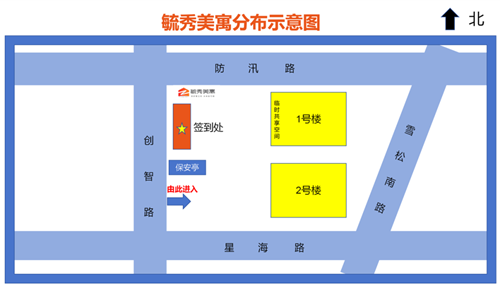 簽到處位于西門(mén)入口保安亭北側(cè)