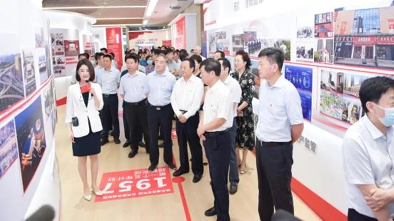 市委黨史學(xué)習(xí)教育領(lǐng)導(dǎo)小組辦公室常務(wù)副主任、二級(jí)巡視員徐西平,市委黨史學(xué)習(xí)教育第三巡回指導(dǎo)組組長(zhǎng)、二級(jí)巡視員張福清,市國(guó)資委黨委書記、主任李秀山等領(lǐng)導(dǎo)出席開(kāi)幕式。地產(chǎn)集團(tuán)黨委書記、董事長(zhǎng)萬(wàn)永生致歡迎詞。李秀山講話并宣布成就展開(kāi)幕。委領(lǐng)導(dǎo)班子成員,各市管企業(yè)主要負(fù)責(zé)同志及分管領(lǐng)導(dǎo),駐鄭央企分管領(lǐng)導(dǎo)等共計(jì)200余人參加開(kāi)幕式并觀展。開(kāi)幕式由鄭州市國(guó)資委黨委副書記黃名坤主持。