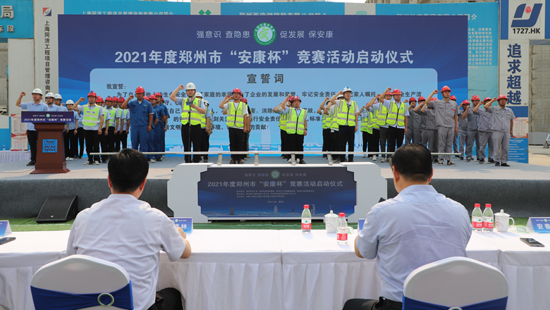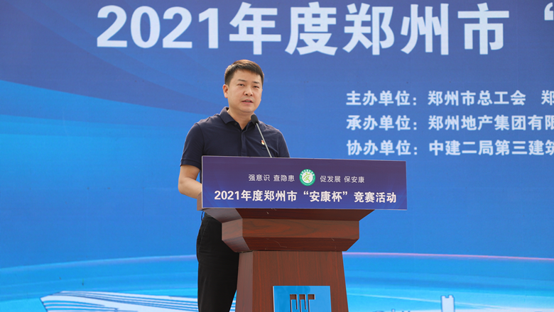 為深入貫徹落實習近平總書記有關加強安全生產工作的部署和要求,進一步強化各級各部門、各企業主體的安全責任意識,確保我市安全生產形勢持續好轉,職工安全健康不斷鞏固。6月11日上午,由鄭州市總工會、鄭州市應急管理局、鄭州市衛生健康委員會及鄭州市消防救援支隊主辦,鄭州地產集團工會、鄭州西流湖控股有限公司工會承辦的鄭州市2021年“安康杯”競賽啟動儀式在中原新區廟王東安置區項目成功舉行。鄭州市相關組織部門、市總工會成員單位、地產集團、西流湖公司、各參建單位共200余人參加啟動儀式。鄭州市一級巡視員,市總工會黨組書記、主席趙新中、鄭州市衛生健康委員會黨組成員、二級調研員楊德林、鄭州市應急管理局三級調研員安春茂、鄭州市消防救援支隊副支隊長、滅火救援指揮部部長李隆、鄭州市總工會副主席宋少丹、鄭州地產集團有限公司監事會主席、工會主席李靜波、鄭州地產集團西流湖公司黨支部書記、董事長、總經理 吉獻亮,中建二局第三建筑工程有限公司西北分公司黨委副書記、執行總經理趙海軍出席儀式。啟動儀式由市總工會勞動和經濟部部長宋慧主持。