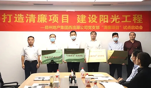 會上,吉獻亮首先致歡迎辭,昌磊宣讀鄭州地產集團西流湖公司黨支部《“清廉項目”建設實施方案》,李靜波、吉獻亮為“清廉項目”試點單位授牌,劉冰為項目廉政監督員頒發了聘書。中原新區三十里鋪中地塊一標段項目和金岱科創城鼎瑞街綜合提升項目作為“清廉項目”試點,項目總包單位和監理單位負責人就抓實落細“清廉項目”建設實施方案各項措施、全面打造陽光高效廉潔工程作出表態發言。