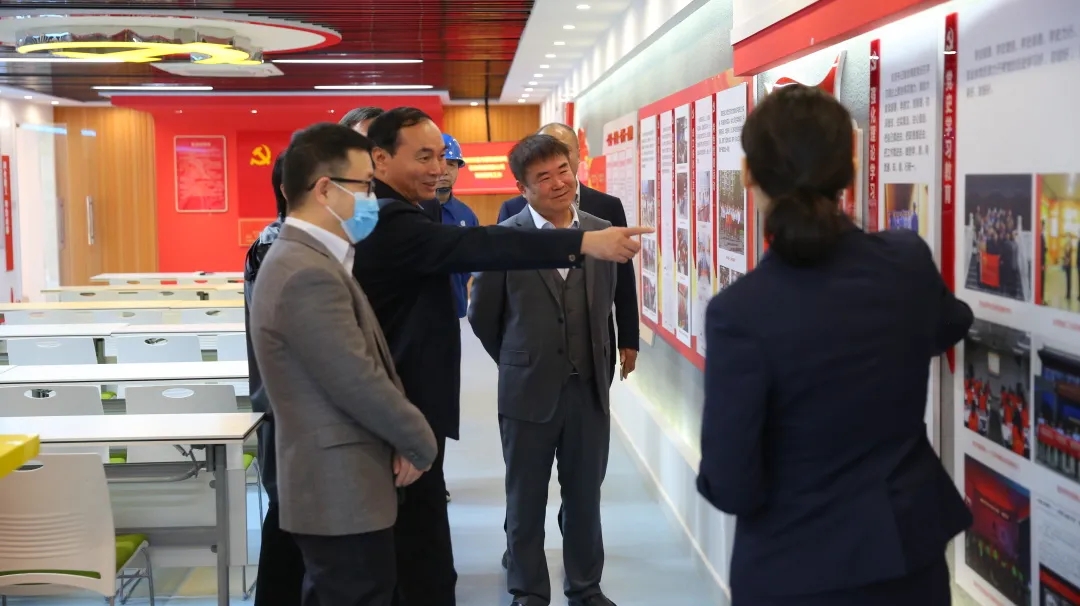 在鄭地投資公司黨支部省醫項目部,投資公司黨支部書記、董事長楚紀方詳細匯報了黨支部以黨建智慧“大腦”為依托,圍繞“紅色物聯  融通萬物”黨建特色品牌”,全力構建“113N”黨建工作體系的特色做法。驗收組一行詳細觀摩了省醫項目“紅色物聯 融通萬物”黨建示范點創建觀摩展廳。張晟組長高度肯定了投資公司省醫項目、綠城廣場地下綜合開發等惠民項目在解決人民群眾“急難愁盼”問題中展現的責任擔當,強調要繼續堅持用黨的創新理論破解項目發展難題,以新方法新作為開創工作新面貌,將黨建業務互促互融的政治優勢轉化為項目建設優勢,把黨的政治優勢轉化為項目中心工作發展的實際行動。