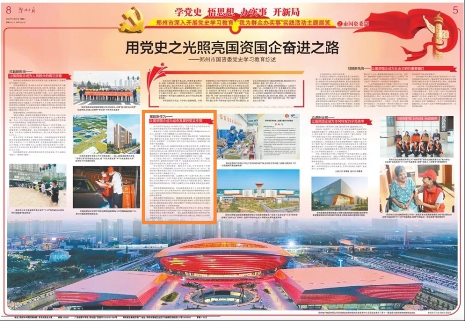 剛剛過去的2021年是我們黨建黨一百周年。在建黨百年的重要時刻,黨中央深謀遠慮,鑒往知來,在全黨深入開展黨史學習教育活動,從百年黨史中汲取新時代趕考路的智慧和力量。1月25日,鄭州市深入開展黨史學習教育“我為群眾辦實事”實踐活動主題展覽之市國資委篇《用黨史之光照亮國資國企奮進之路--鄭州市國資委黨史學習教育綜述》被《鄭州日報》刊發、《人民日報》客戶端轉載。
