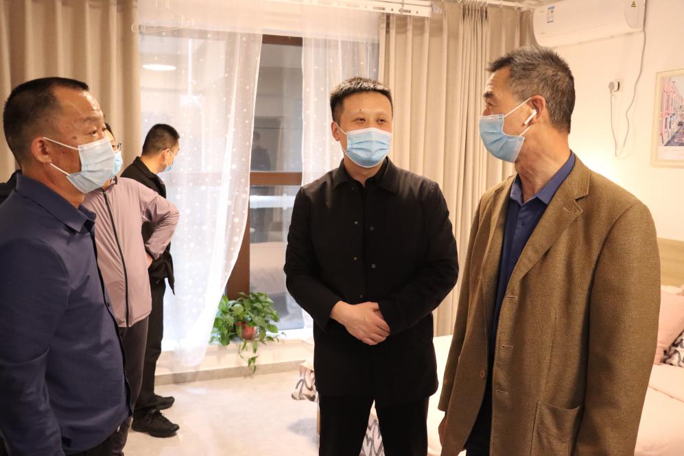 在項目現場,楊慶忠一行聽取了鄭地租賃公司負責人對項目定位設計、運營模式、服務體系等情況的整體介紹,仔細參觀了各戶型樣板間,查看內部結構和功能設計,詳細了解了房屋精裝交付標準、共享空間搭建、安全管理模式、成本管控措施等情況,并現場互動體驗了入戶智能門鎖及智能家居系統。